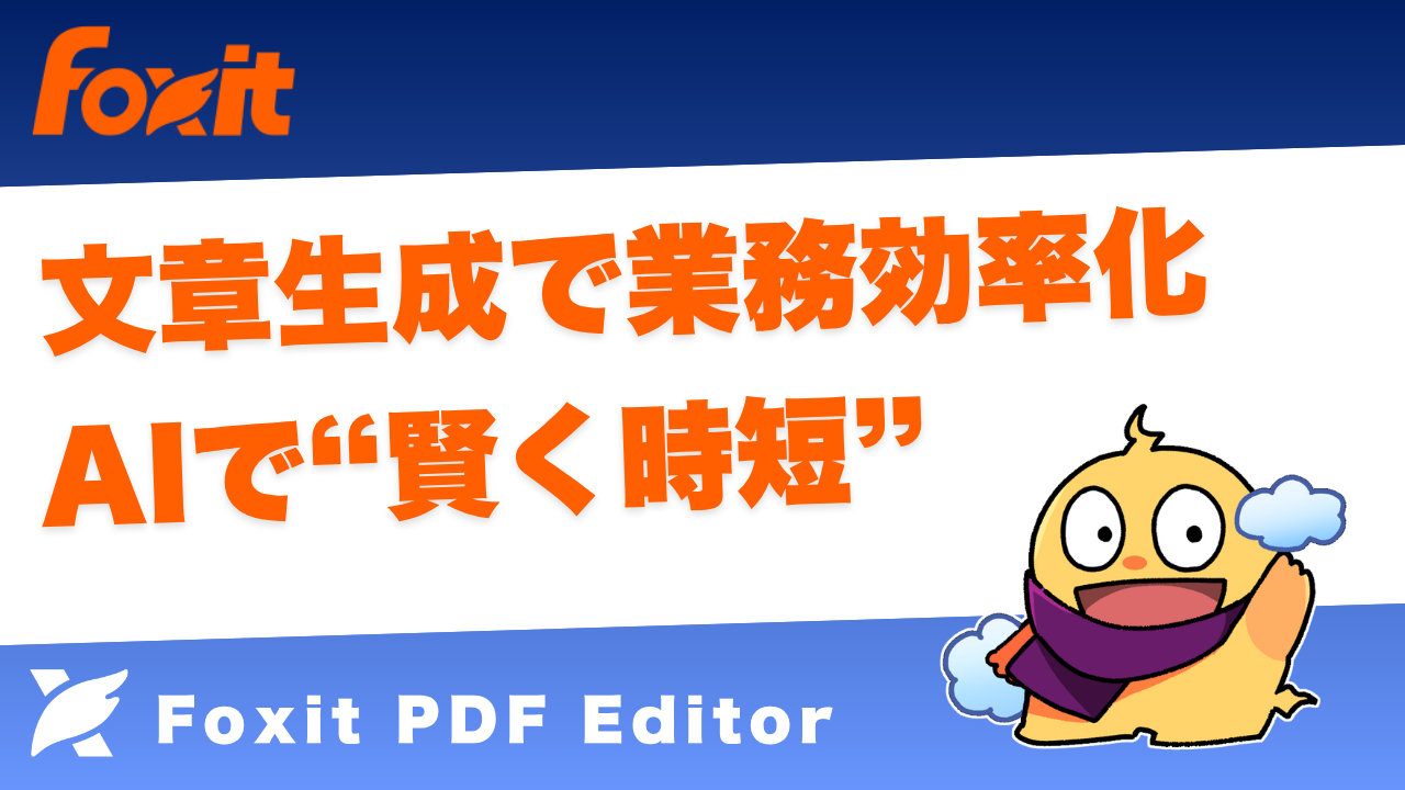 Foxit AI アシスタントが製品説明やUIテキストまで自動生成。スマートに働くためのヒントが満載!業務効率化を加速するAI活用術と無限の可能性を短時間で紹介します。