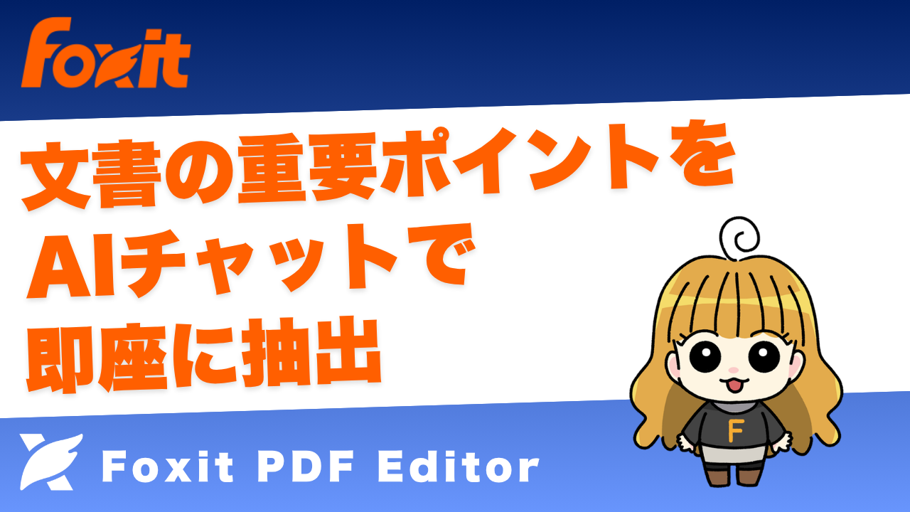 Foxit PDF EditorのAIアシスタントで業務を効率化!長い文書から必要な情報をチャット形式で即座に抽出。各部署への共有もスムーズになり、時間を大幅に節約します。