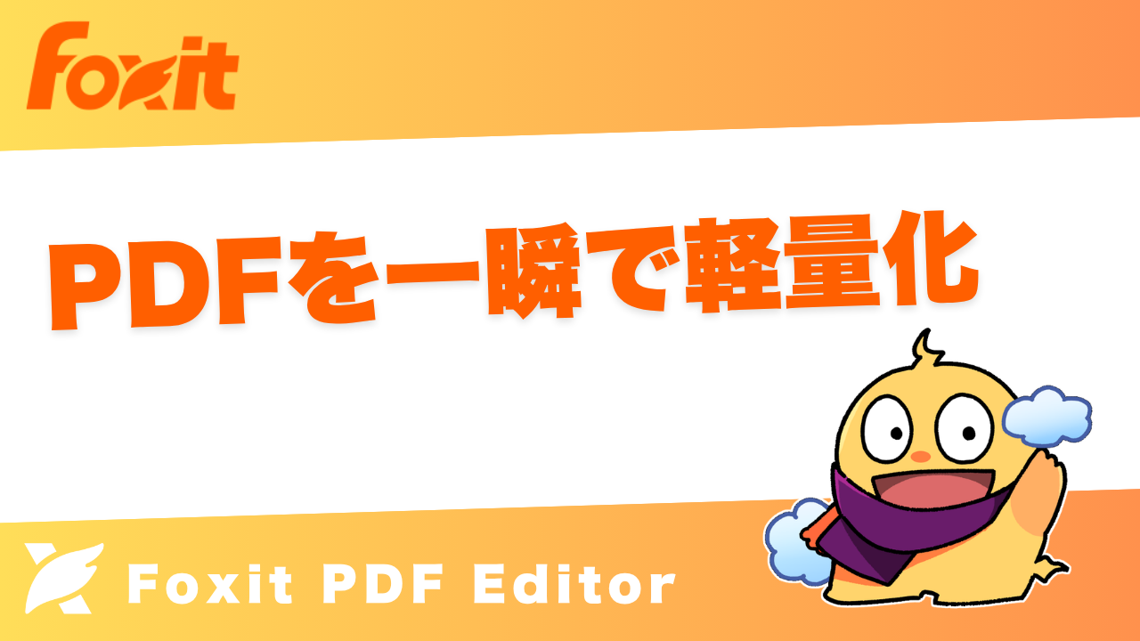 大きすぎて送れないPDFもFoxit PDF Editorなら即軽量化。 ファイルサイズ削減・最適化・複数PDFの一括処理までスムーズに!メール送信や保管がもっとラクに。